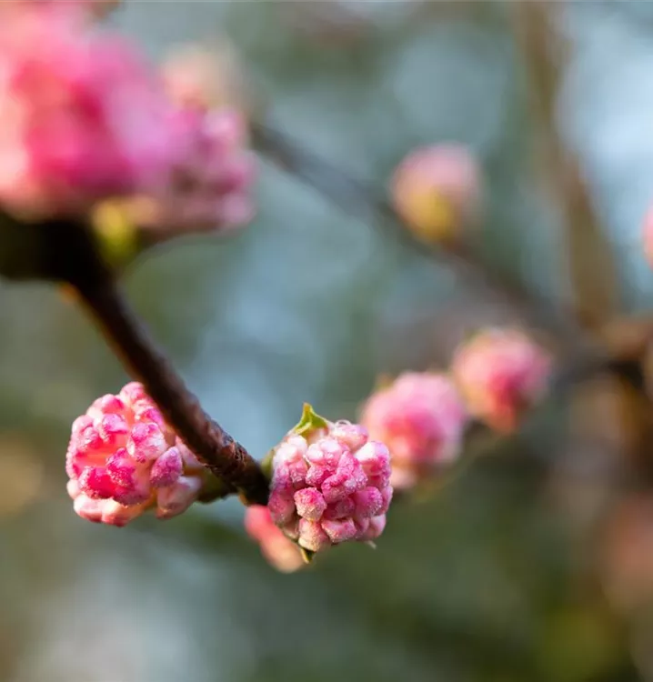 Der Winter-Schneeball 'Charles Lamont' ist eine winterharte Pflanze, die mit Temperaturen um -19°C zurechtkommt.