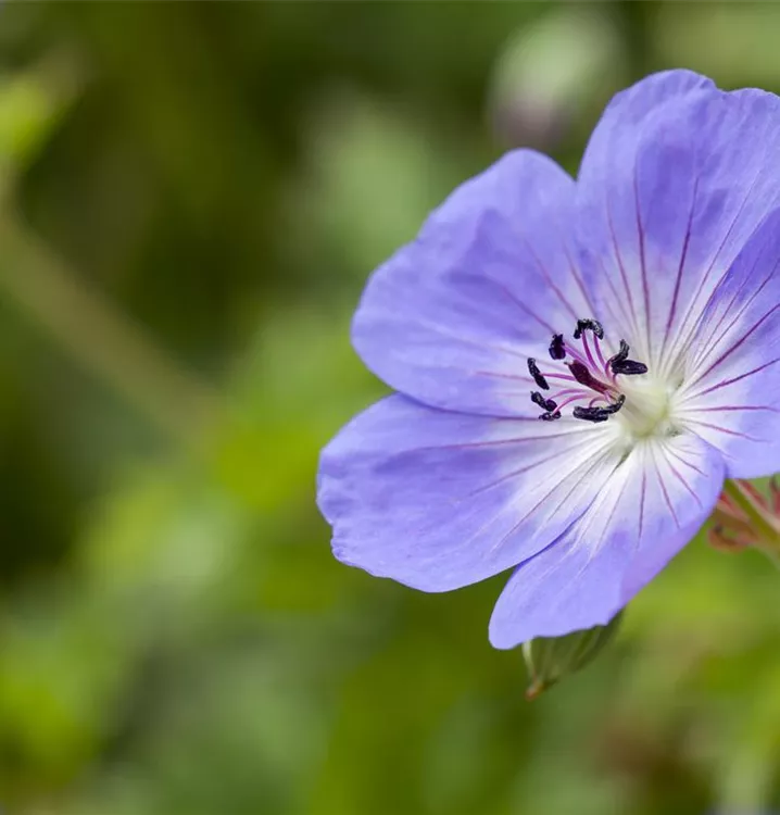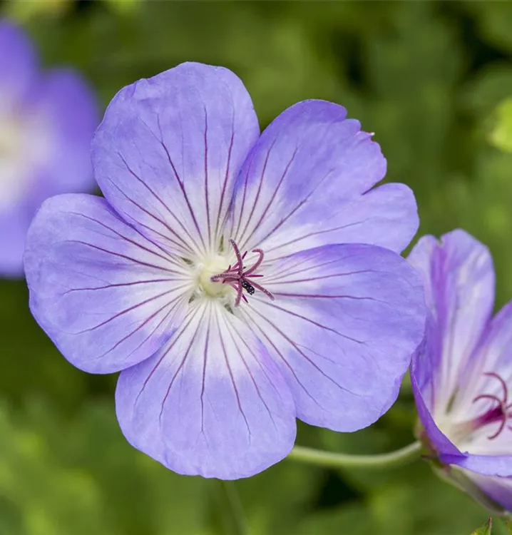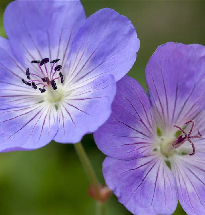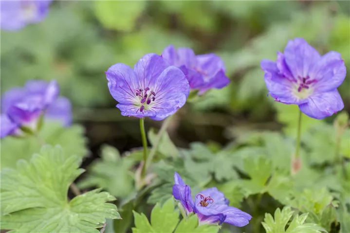 Ein Grund, warum der Storchschnabel 'Rozanne'® eine Bereicherung für den Garten ist, sind sicher seine hübschen Blüten. Ab Juni stellt er dies unter Beweis und lässt seine blauen Blüten für sich sprechen. Bienen und andere Insekten sind schon längst überzeugt von seinen Blüten-Qualitäten. Aber natürlich gehören auch die rundlichen, gelappten Blätter zu Geranium wallichianum 'Rozanne'® und tragen mit ihrer mittelgrünen Farbe zum Charakter dieser sommergrünen Staude bei.