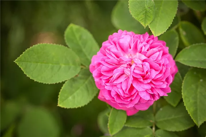 In jedem Garten sollte immer auch Platz sein für eine Rose. So bietet die Strauchrose 'Rose de Resht' ein klassisches Highleight bei der Gartengestaltung mit ihren angenehm duftenden, starkgefüllten Blüten in Purpurrot, die sie ab Juni hervorbringt.
