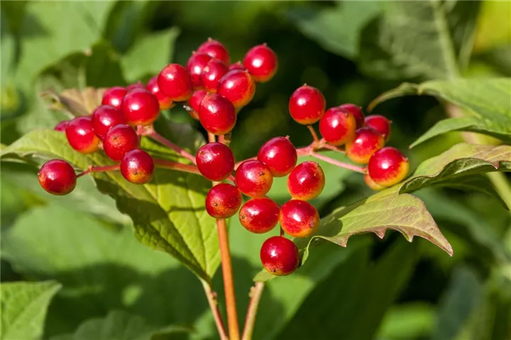 Die roten Steinfrüchte des Gemeinen Schneeball sind ab September ausgereiften. Sie sind eine Zierde für sich!