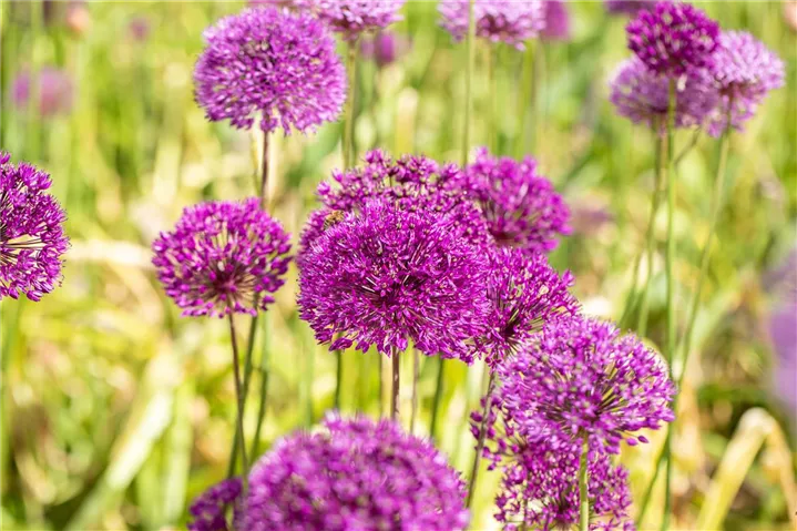 Allium aflatunense 'Purple Sensation' bringt Dolden mit purpurvioletten Blüten ab Mai hervor.
