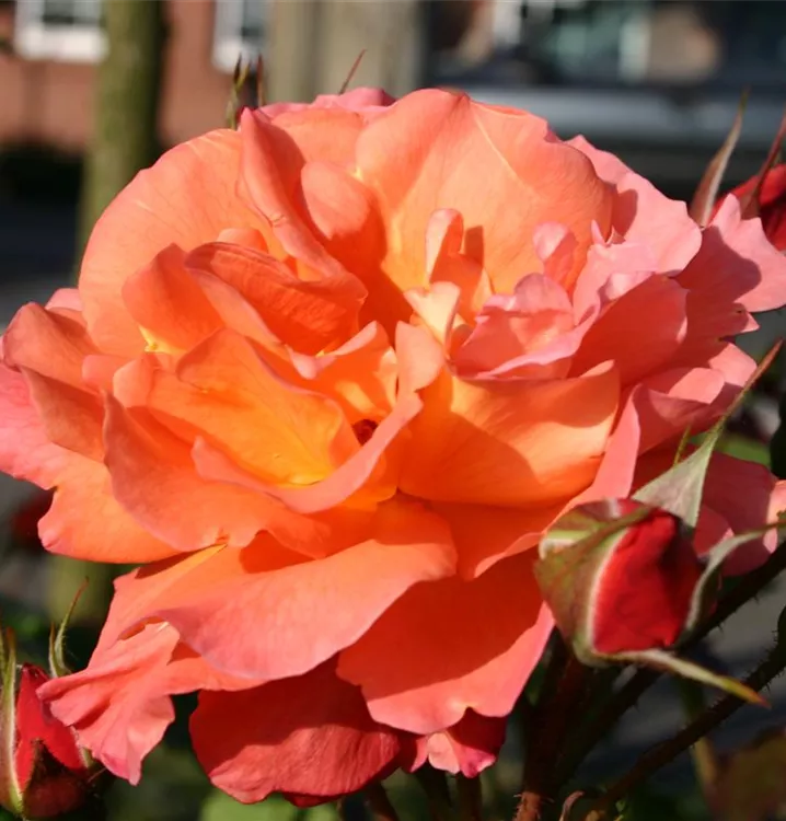 In jedem Garten sollte immer auch Platz sein für eine Rose. So bietet die Strauchrose 'Westerland'® ein klassisches Highleight bei der Gartengestaltung mit ihren stark duftenden, halbgefüllten Blüten in Kupferorange, die sie ab Juni hervorbringt.