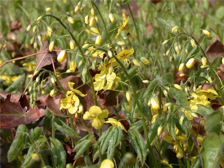 Epimedium pinnatum ssp. colchicum bringt Trauben mit gelben Blüten von April bis Mai hervor.