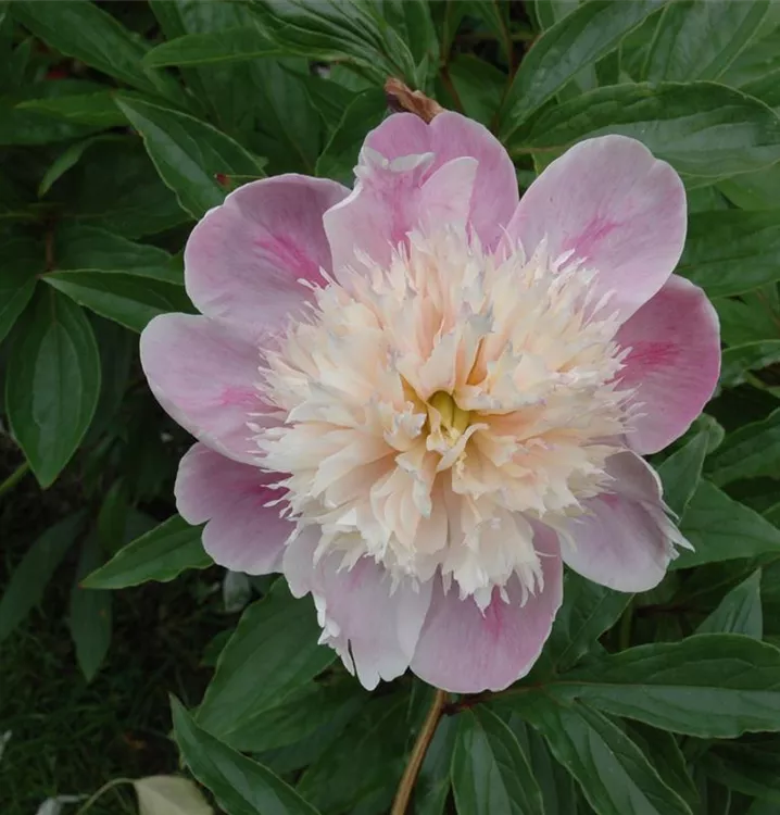 Paeonia lactiflora 'Bowl of Beauty' bringt cremeweiß-rosafarbene, schalenförmige Blüten, die von Mai bis Juni einen angenehmen Duft verbreiten, hervor. Die einzelnen Blüten sind dabei halbgefüllt.