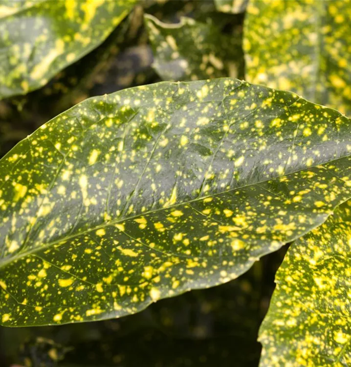 Halbschattig bis schattig sollte der Platz für Aucuba japonica 'Variegata' sein. Wichtig ist auch, dass der Standort windgeschützt liegt.