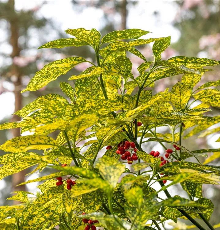 In China, Japan und Korea liegt das natürliche Verbreitungsgebiet der Art Aucuba japonica.