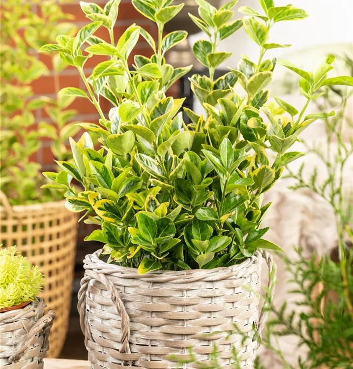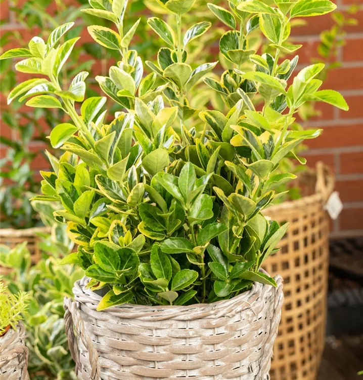 Eine Gartengestaltung ohne Gehölze ist möglich, aber die Gelbbunte Japanspindel 'Aureomarginatus' sollte schon ihren Platz bekommen. Das immergrüne Blattwerk überzeugt mit seinen eiförmigen, gesägten Blättern in schönem Grün. Die Blüten, die Euonymus japonicus 'Aureomarginatus' ab April trägt, sind nicht außer Acht zu lassen.