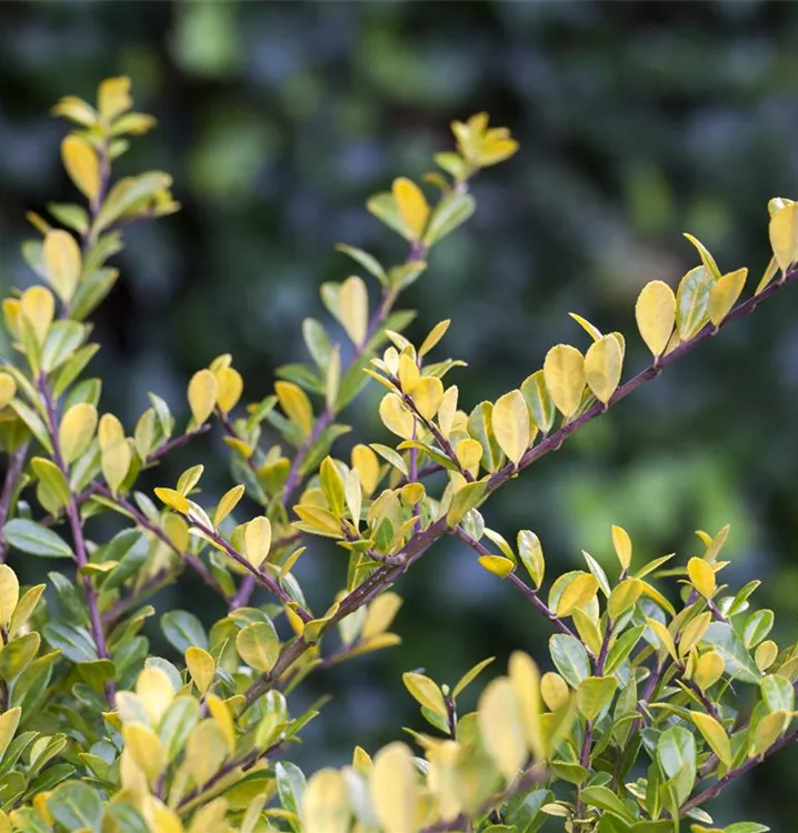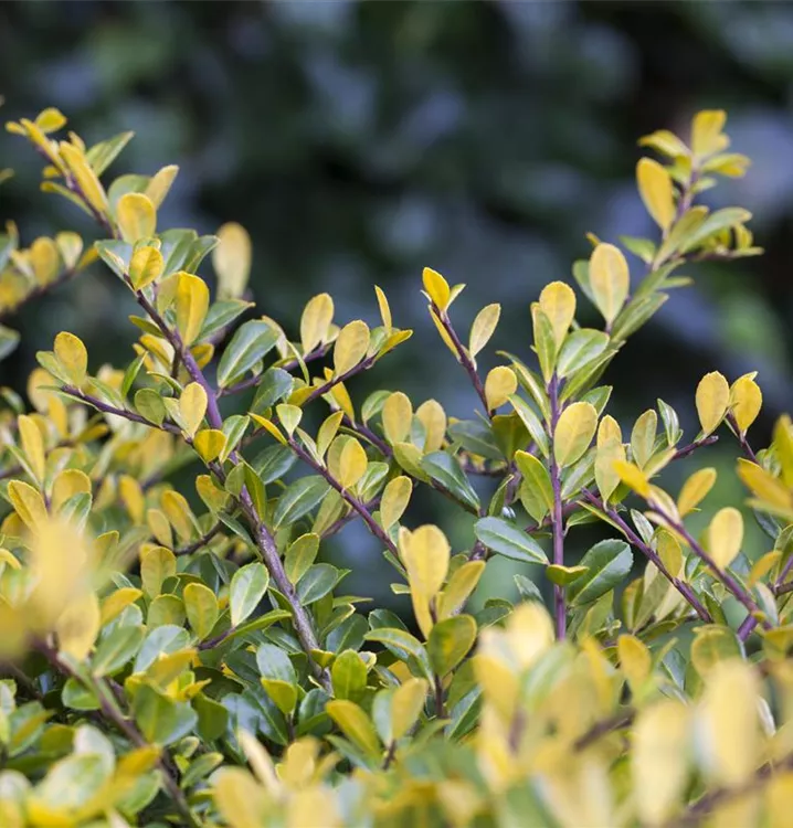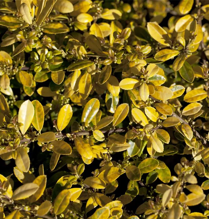 Der Gelbe Berg-Ilex 'Golden Gem' ist immergrün und trägt goldgelbe Blätter.