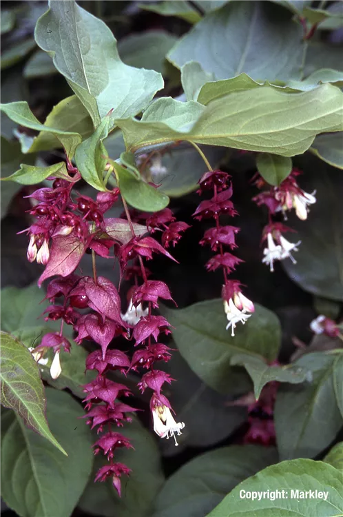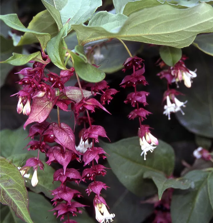 Eine Gartengestaltung ohne Gehölze ist möglich, aber die Schöne Leycesterie sollte schon ihren Platz bekommen. Nicht zuletzt wegen ihrer roten Früchte, mit denen Leycesteria formosa ab Oktober einen dekorativen Blickfang bildet. Ihnen voraus gehen ab August dunkelrote Blüten, über die sich nicht nur Bienen und andere Insekten freuen können. Doch auch das sommergrüne Laubwerk spricht für dieses Gehölz. Die lanzettlichen Blätter haben im Austrieb noch eine rote Färbung, nehmen dann aber eine schöne mittelgrüne Farbe an.