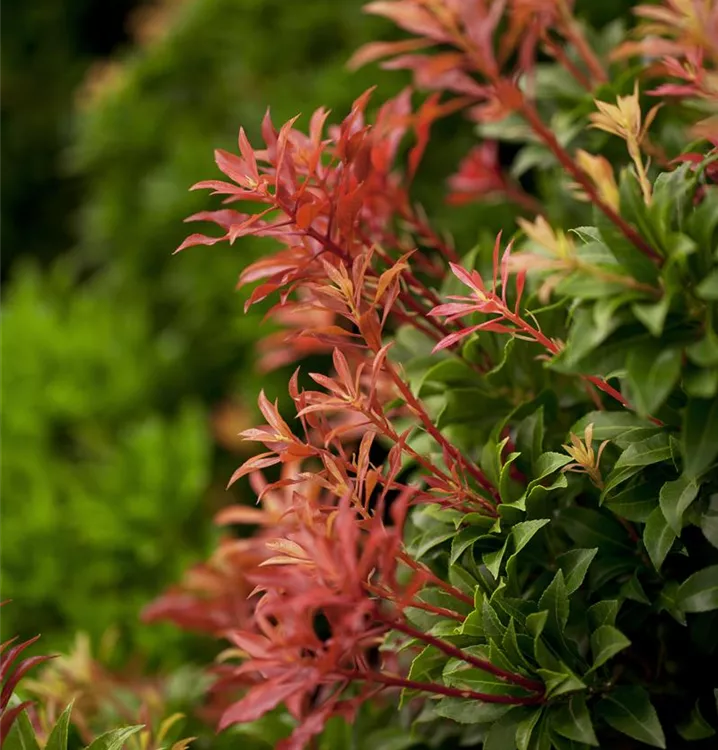 Mit dem fein verzweigten Wurzelsystem gehört Pieris japonica 'Mountain Fire' zu den Flachwurzlern.