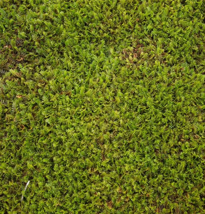 Der Braune Fiederteppich ist wintergrün und trägt dunkelgrüne Blätter.