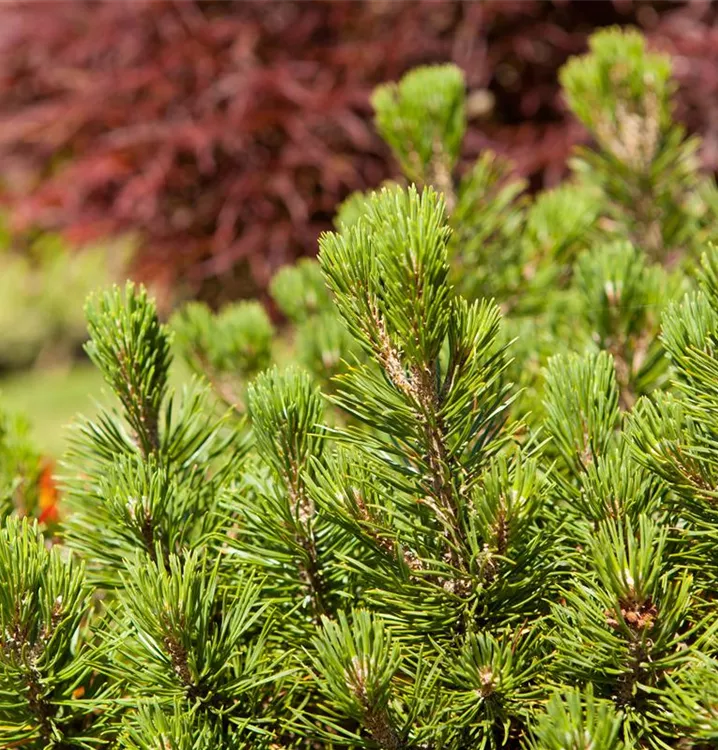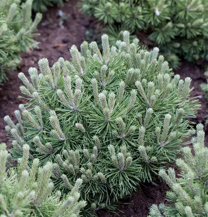 Ähnliche Ansprüche beziehungsweise Eigenschaften wie die Kugel-Kiefer 'Mops' hat zum Beispiel Pinus nigra 'Nana'.