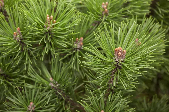 Eine Gartengestaltung ohne Nadelgehölze ist möglich, aber die Kugel-Kiefer 'Mops' sollte schon ihren Platz bekommen. Das immergrüne Nadelwerk überzeugt mit schöner mittelgrüner Farbe. Auch die rosaroten Blüten, die Pinus mugo 'Mops' ab Juni trägt, sind nicht außer Acht zu lassen, gehen aus ihnen zu Oktober doch die kegelförmigen, braun-gelben Zapfen hervor.