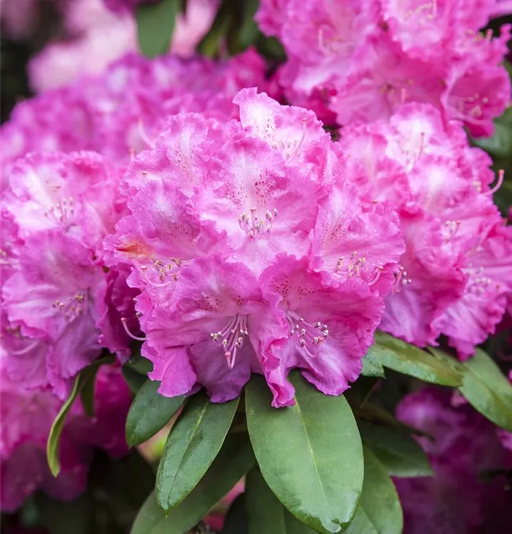 Jedes Jahr aufs neue sorgt der Yaku-Rhododendron 'Polaris' für ein Highlight im Garten. Wenn ab Mitte Mai seine Blüten in herrlichem Rosarot erscheinen sind ihm die bewundernden Blicke sicher. Besonders die gelbe Zeichnung der Blüten fällt ins Auge! Doch auch außerhalb der Blütezeit ist dieser immergrüne Rhododendron mit dem dunkelgrünen Blattwerk eine Bereicherung.