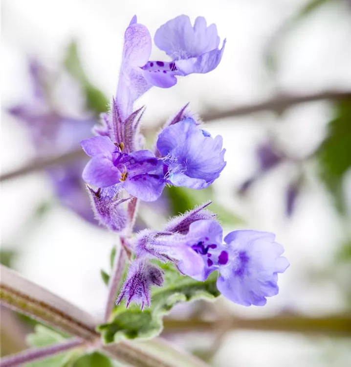 Ein Grund, warum die Katzenminze 'Walker´s Low' eine Bereicherung für den Garten ist, sind sicher ihre hübschen Blüten. Ab Juni stellt sie dies unter Beweis und lässt ihre violetten Blüten für sich sprechen. Bienen und andere Insekten sind schon längst überzeugt von ihren Blüten-Qualitäten. Aber natürlich gehören auch die herzförmigen, gekerbten Blätter zu Nepeta x faassenii 'Walker´s Low' und tragen mit ihrer grau-grünen Farbe zum Charakter dieser sommergrünen Staude bei.