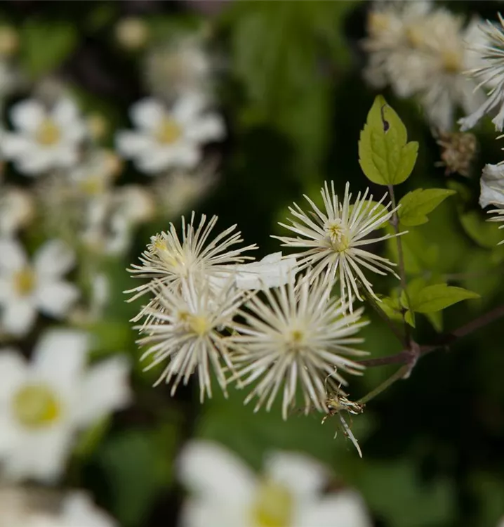 Ein Grund, warum die Waldrebe 'Summer Snow' eine Bereicherung in der Gartengestaltung ist, ist sicher ihre hübsche Blüte. Ab Juni stellt sie dies unter Beweis und lässt ihre cremeweißen Blüten für sich sprechen.