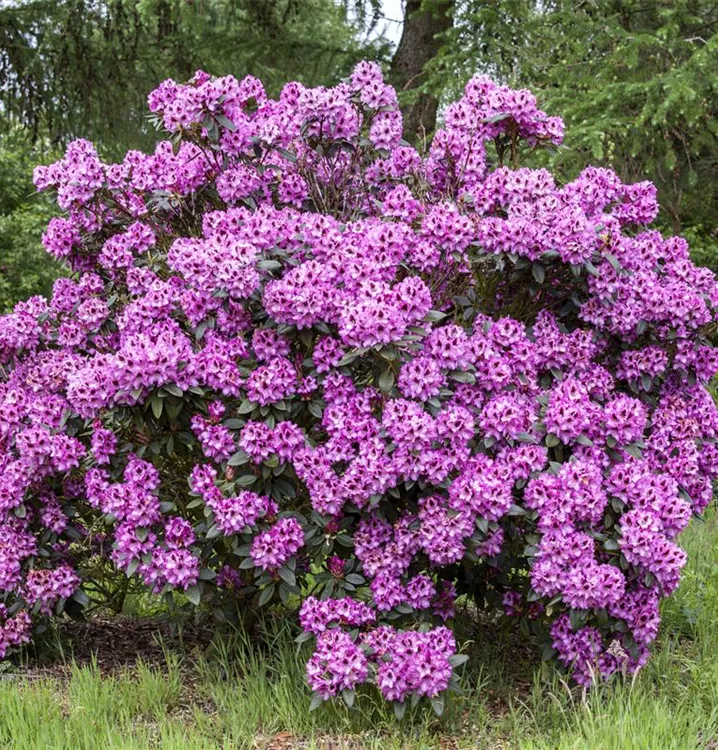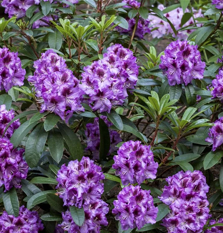 Jedes Jahr aufs neue sorgt der Rhododendron-Hybride 'Pfauenauge'® für ein Highlight im Garten. Wenn ab Ende Mai seine Blüten in herrlichem Lila erscheinen sind ihm die bewundernden Blicke sicher. Besonders die dunkelrote Zeichnung der Blüten fällt ins Auge! Doch auch außerhalb der Blütezeit ist dieser immergrüne Rhododendron mit dem dunkelgrünen Blattwerk eine Bereicherung.
