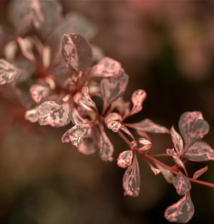 Eine Gartengestaltung ohne Gehölze ist möglich, aber die Berberitze 'Harlequin' sollte schon ihren Platz bekommen. Das sommergrüne Blattwerk überzeugt mit seinen eiförmigen Blättern in schönem Rosa bis Panaschiert.