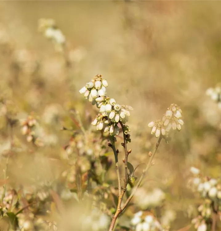 Vaccinium corymbosum 'Chandler' bringt hellrosafarbene, becherförmige Blüten von Mai bis Juni hervor.