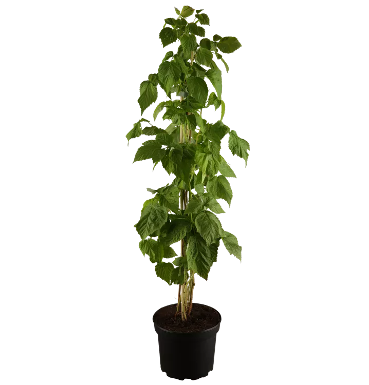 Die Himbeere 'Autumn Bliss'(s) ist sommergrün und trägt hellgrüne Blätter.