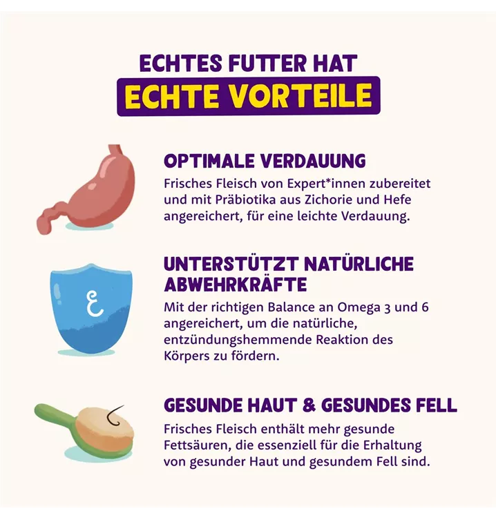Perfekt für Hunde jeden Alters. Diese getreidefreie Rezeptur steckt voll mit frischem Huhn und ist komplett frei von Zuckerzusätzen.