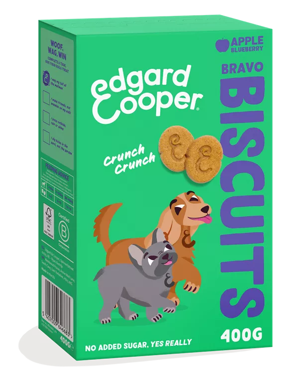 Perfekt für Hunde jeden Alters und vollgepackt mit frischem Apfel und Blaubeeren, und natürlich einem knuspernden Crunch.