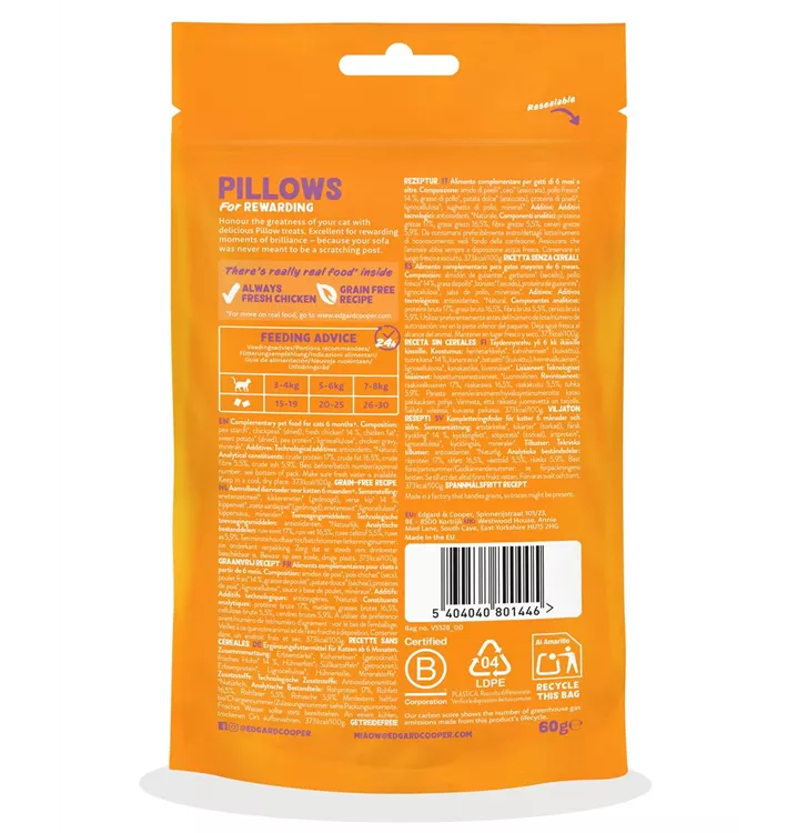 Vollgepackt mit frischem, leckerem Huhn und natürlichen Zutaten – getreidefrei und ohne Zuckerzusatz. Und mit weniger als 2 kcal pro Leckerli kannst du deine Katze bedenkenlos immer wieder aufs Neue belohnen.