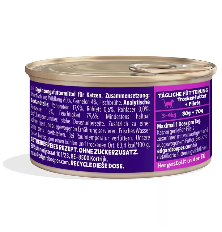 Thunfisch 60%, Garnelen 4%, Fischbrühe