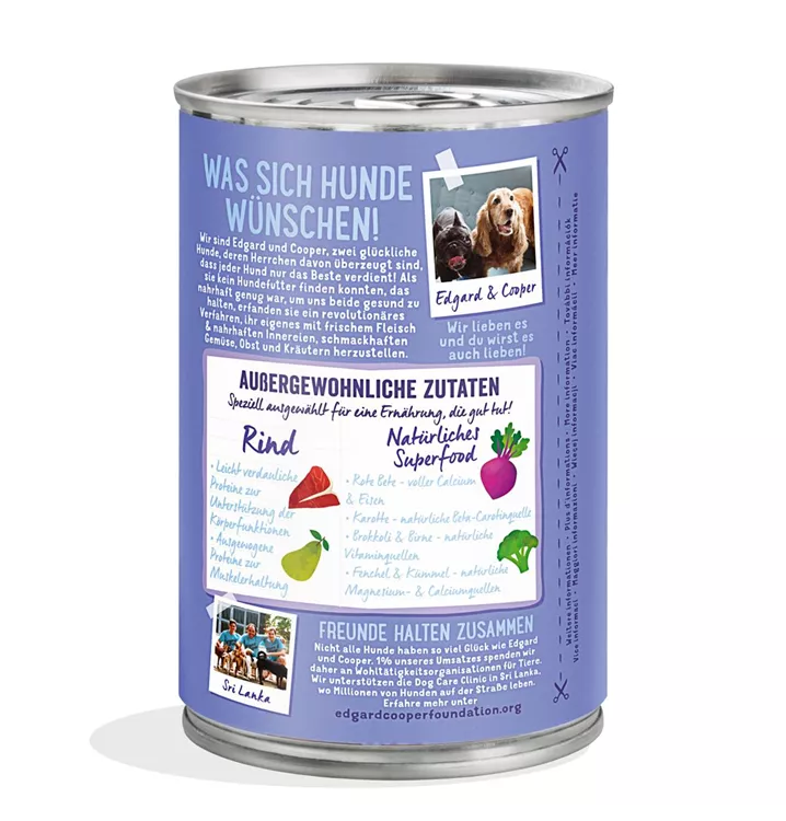 Die Hauptzutat dieses einfachen, getreidefreien Rezepts ist Rind. Es bietet viel ausgewogenes, leicht verdauliches Protein, sowie Präbiotika für eine gute Verdauung.