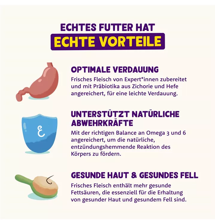 Diese leckere, getreidefreie Rezeptur wird aus Wild und Ente gemacht - beides neuartige Proteinquellen für Hunde mit empfindlichem Magen. Wild ist reich an Omega-3, das wichtig für ein weiches und glänzendes Fell ist.