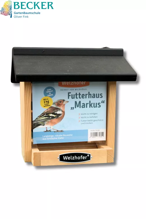 - Vogelfutterhaus (Holz): gefertigt aus langlebigem, nordischem Kiefernholz
