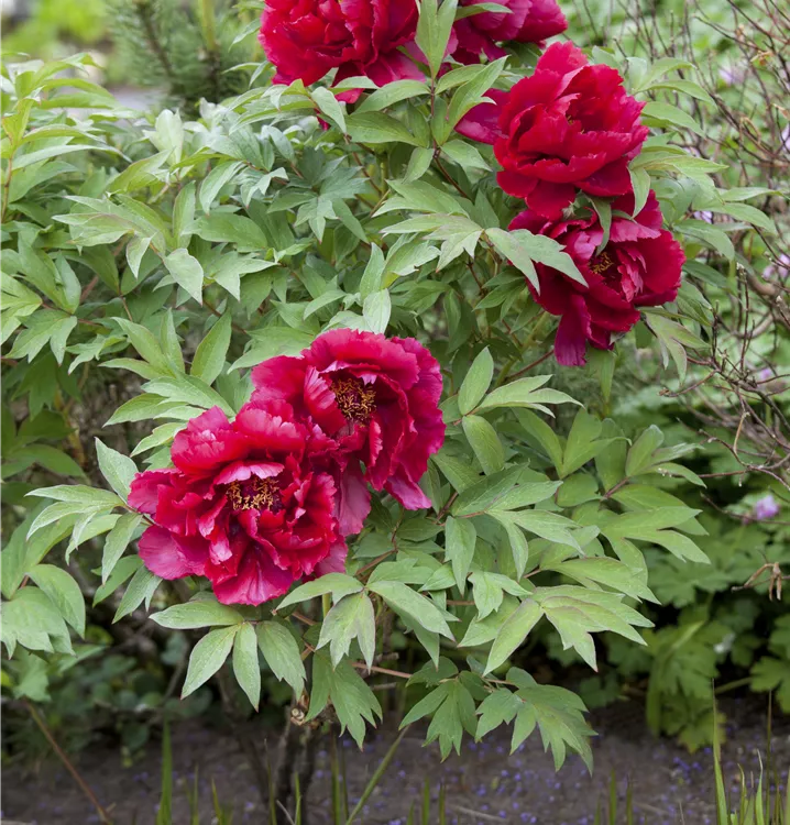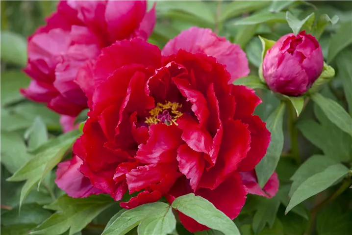 Die Asiatische Pfingstrose ist sommergrün und trägt dunkelgrüne Blätter.