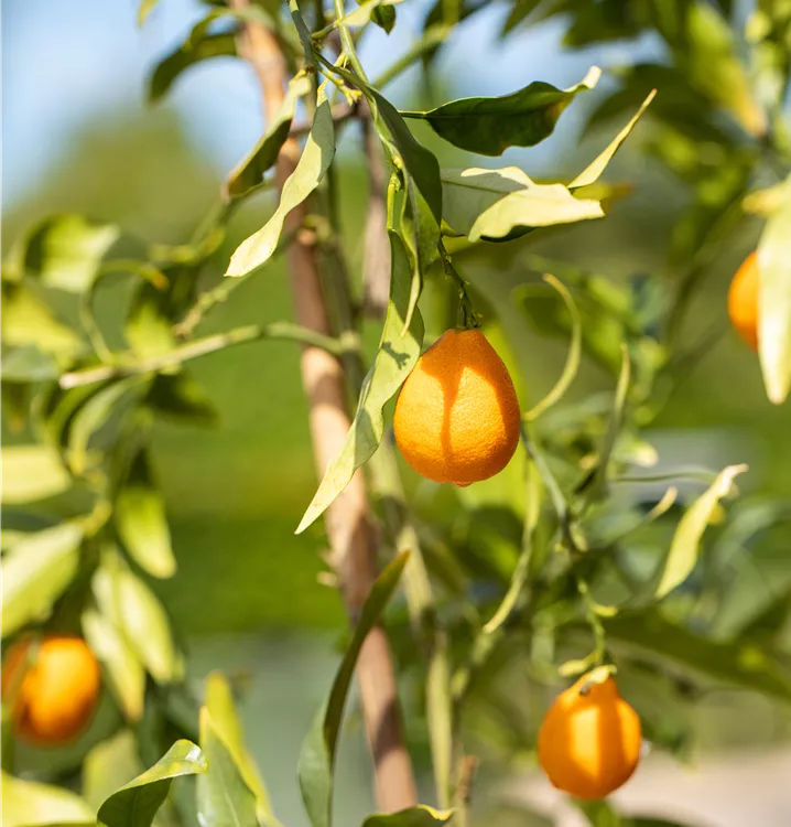 Die Zitruspflanze bringt Urlaubsstimmung in den Garten. Das immergrüne Blattwerk überzeugt mit seinen eiförmigen Blättern. Die stark duftenden Blüten, die Citrus ab Mai trägt, sind nicht außer Acht zu lassen. Ab Oktober reifen ihre Früchte, die sogar essbar sind.
