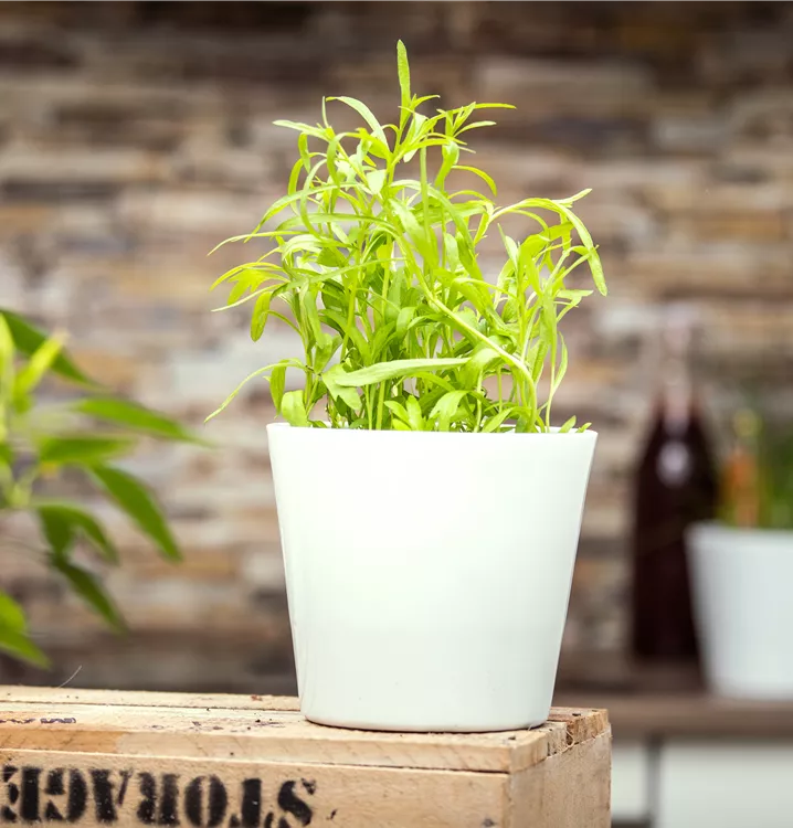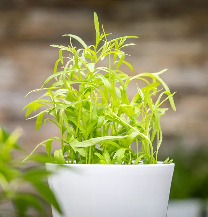 Die Blätter des Estragon sind ein Heighlight im Kräutergarten, versprechen sie doch ein würziges Geschmackserlebnis. Dazu verleiht die mittelgrüne Farbe und die gefingerte Form den Blättern ihren einzigartigen Charakter. Von Juli bis August kann der sommergrüne Estragon beerntet werden. Bekannt ist der Estragon zum Beispiel bei der Zubereitung von Fleischgerichten.