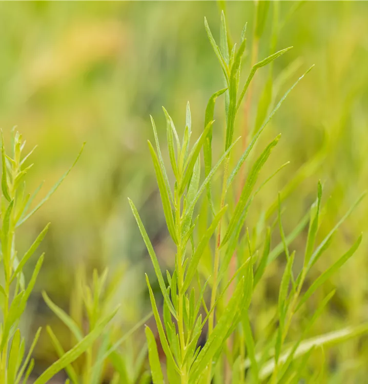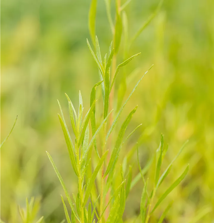 Der Estragon ist sommergrün und trägt mittelgrüne Blätter.