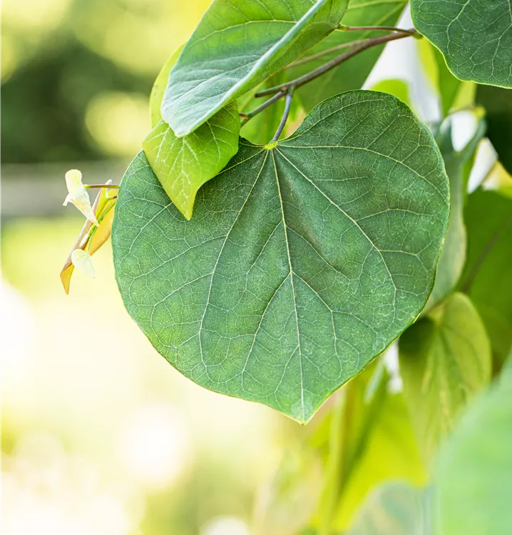 Der Kanadische Judasbaum 'Cascading Hearts' ist sommergrün und trägt mittelgrüne Blätter.