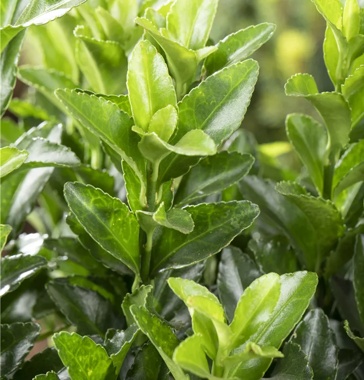 Die Japanspindel 'Green Spire' ist immergrün und trägt dunkelgrüne Blätter.