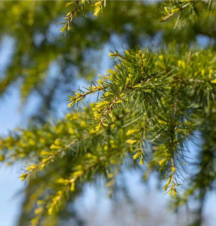 Als immergrünes Nadelgehölz beginnt die Gold-Himalaya-Zeder 'Aurea' relativ früh im Jahr mit dem Austrieb. Mit der Zeit nehmen die Nadeln dann ihre gelb-grüne Farbe an.