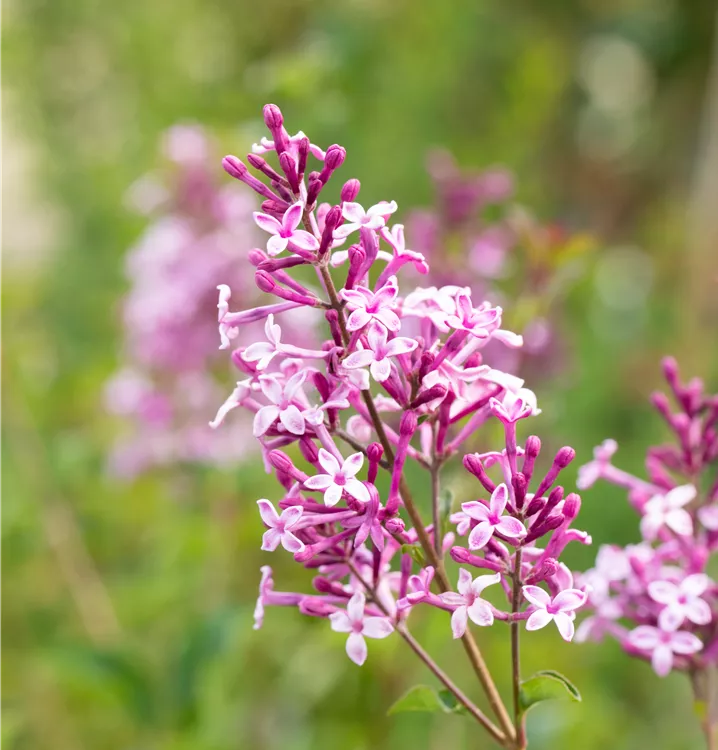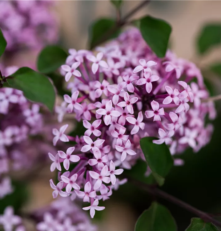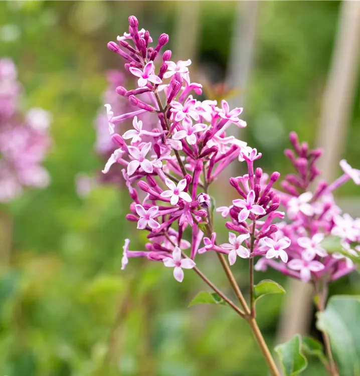 Syringa meyeri 'Red Pixie' bringt rosafarbene Blüten, die von Juni bis Juli einen starken Duft verbreiten, hervor.