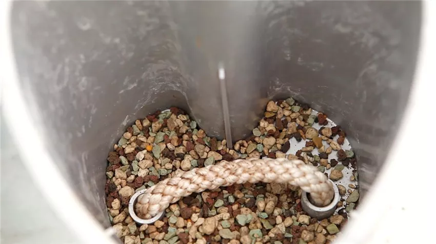 Zum Umfang vieler wasserspeichernder Pflanzgefäße gehört auch ein Wasserstandsanzeiger. Prüfen Sie, ob dieser auch funktionstüchtig ist. Stellen Sie also sicher, dass der Anzeigenstab sich nicht verhakt hat und stecken Sie ihn in den dafür vorgesehenen Platz.